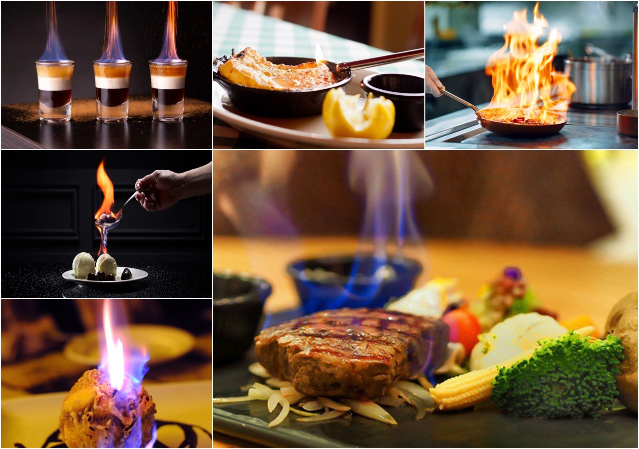 • Trình diễn flambé trực tiếp với kỹ thuật điêu luyện